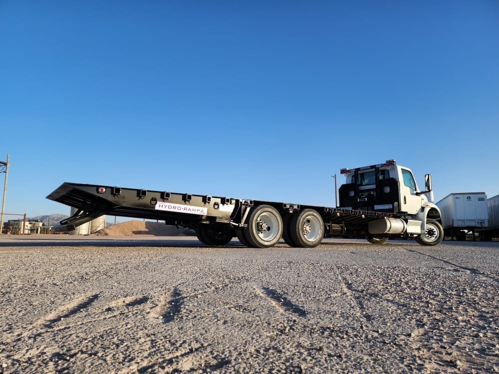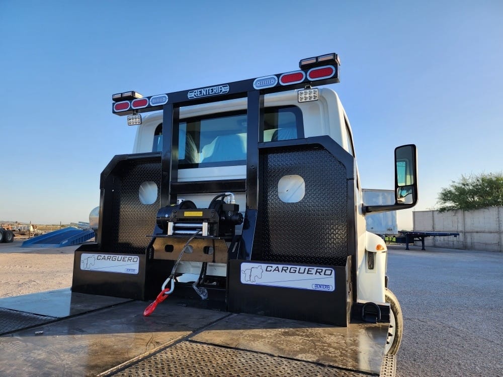 EQUIPO ESPECIAL: Plataforma reforzada de baja altura marca Renteria, modelo CARGUERO 20P, equipada con rampa trasera marca Renteria, modelo HYDRO-RAMPA, con accionamiento hidráulico.